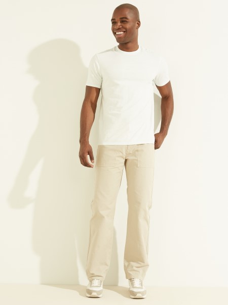 Egy Pár Használati Ihletésű Dobby Nadrág Elülső Zsebekkel, Hátsó Gombos Füles Zsebekkel és Normál Szabással, Vékony Szárral.