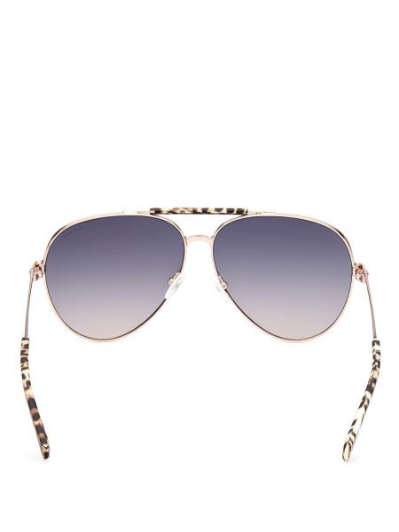 This sleek pair of aviator sunglasses feature metal frames, tinted lenses, a brow bar and logos throughout. Comes in matte black or gold-tone tortoiseshell versions.