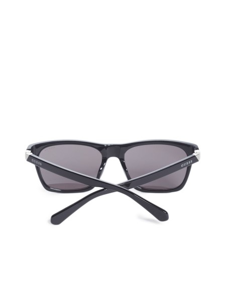 An effortless addition, these sleek sunglasses feature square plastic frames, dark lenses, logo sides and triangle temples.