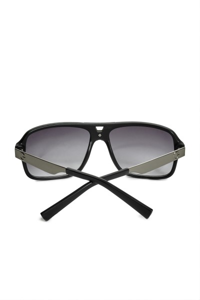 Ez A Műanyag Navigátoros Napszemüveg Színezett Lencsékkel és Kontrasztos Fém Díszítéssel Rendelkezik A Divatos Megjelenés érdekében.