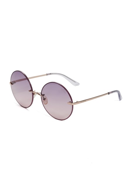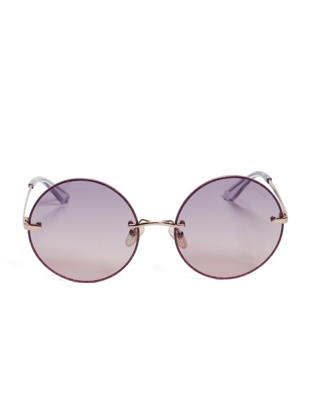Eltakarja A Szemét Ezzel A Kerek Napszemüveggel, Amely Keret Nélküli Dizájnnal és Csillogó Díszítéssel Rendelkezik. Színes Zománcvégekkel Ellátott Fém Karok Teszik Teljessé.