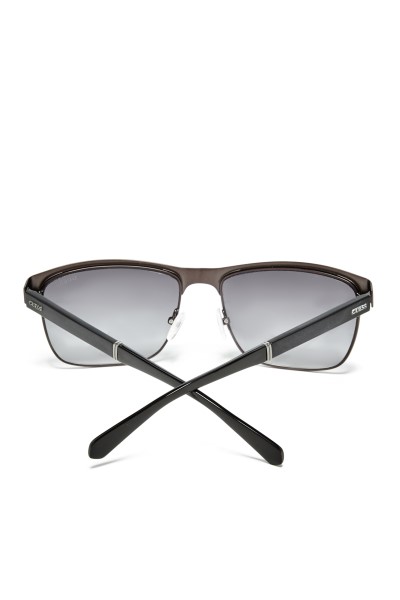Matte metal clubmaster sunglasses with logo emblem at temples and plastic tips.