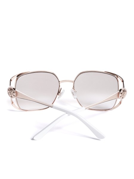 A Divatos Napszemüveg Négyzet Alakú Fémperemes Sziluettje Vékony Híddal. Oldalt Luxus Logóval Kiegészítve.