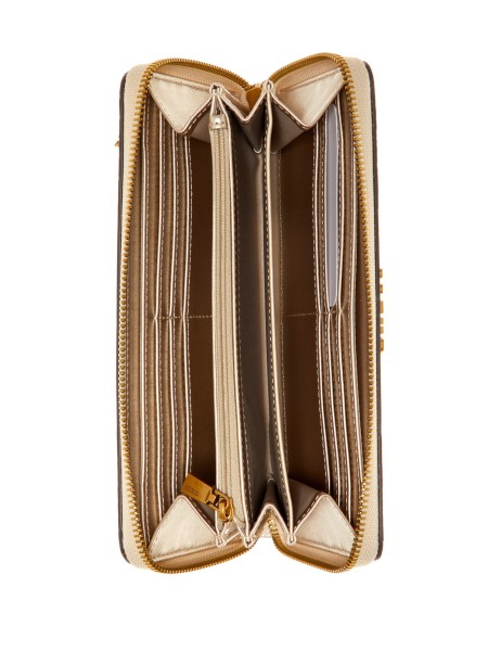 Elegáns Kiegészítője Minden Táskának. Egy Nagy Kavicsos Műbőr Pénztárca Cipzárral és Logó Emblémával.