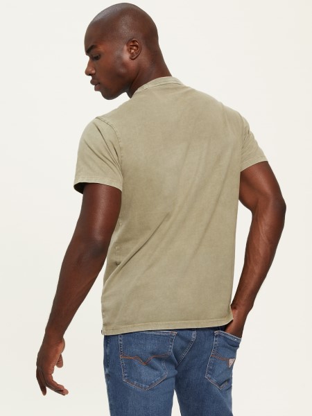 Effortless short-sleeve tee designed in a soft sueded jersey fabrication, featuring a crew neck and embroidered design at front with studded detailing.