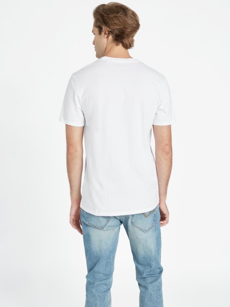 A Színes Logó Merész Megjelenést Kölcsönöz Ennek A Bő Nyakkivágással és Rövid Ujjú Jersey Pólónak.