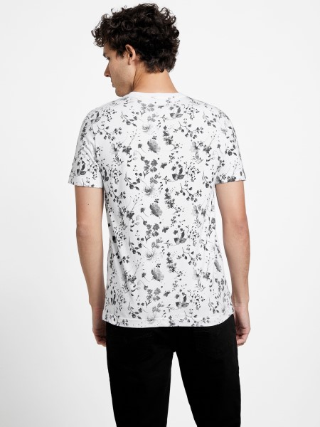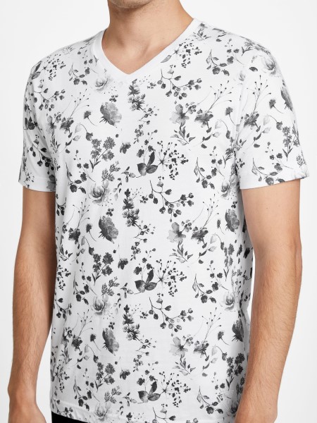 Fedezze Fel Magát Ebben A Virágos Pólóban. Mindenhol Botanikai Mintával, V-nyakú és Rövid Ujjúval. Pamutszálból Készült.