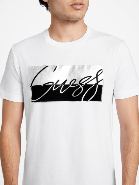 Ez A Kimagasló Darab, Ez A Mez Póló Fémes Dizájnú Logóval, Bő Nyakkivágással és Rövid Ujjakkal Rendelkezik.