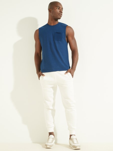 For that rugged laid-back look. This muscle crewneck tee features a cotton mesh pocket and classic sleeveless design. Made with hemp and cotton fibers.