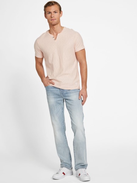 Klasszikus Slub-kötött Póló Hasított Nyakkal és Kétgombos Tépőzárral A Lazább Hangulatért. Bio Pamutszálat Használ.