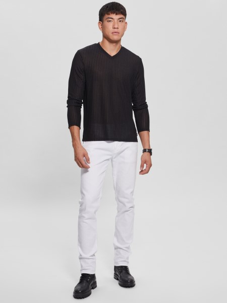 Raktár V-nyakú Kötött Póló Guess Jet Fekete