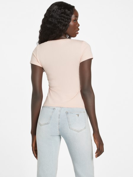 Rövid Ujjú Póló Kerek Nyakkivágással és Fémes Logóval, Aláterített Strasszos Betűkkel. Szerves Pamutszálat Tartalmaz.