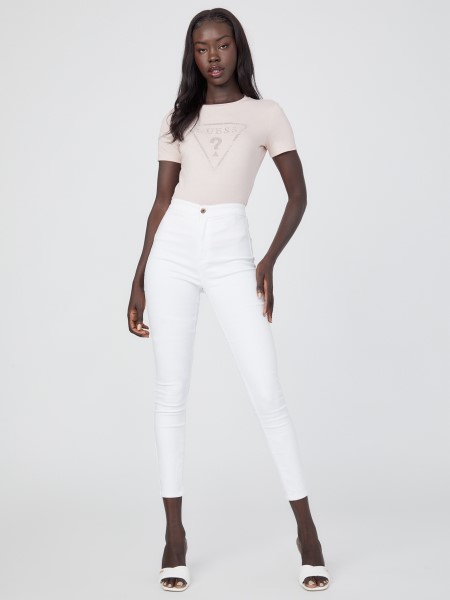Adjon Hozzá Egy Finom Csillogást Ezzel A Rövid Ujjú Pólóval, Melynek Elülső Nyaka és Strasszos Logója Van.