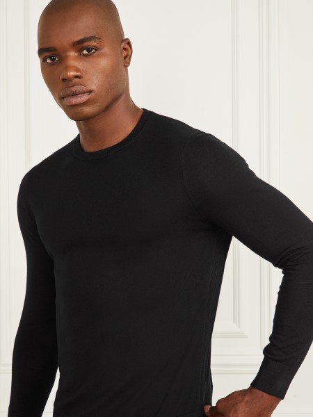 Maradjon Előkelő Fényűző Melegben Ezzel A Klasszikus Nyakú Pulóverrel. Hosszú Ujjú, Bordás Nyakkivágással és Mandzsettával. Gyapjúszálakkal Készült.