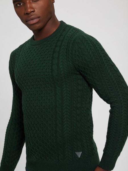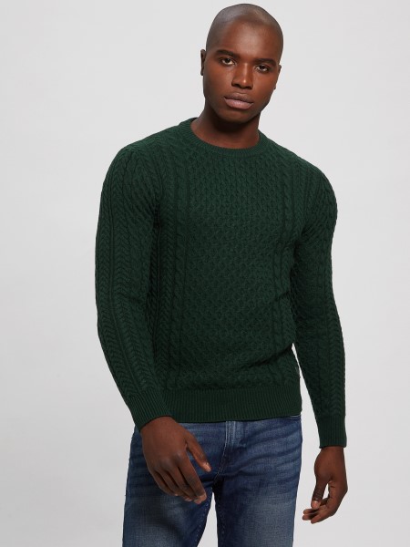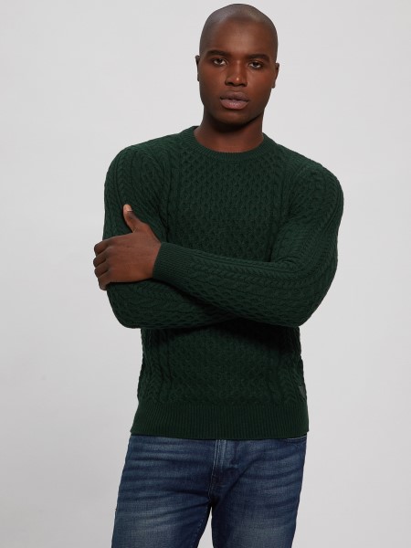 Tartsa Melegen Ebben A Gyapjúkeverék Pulóverben, Amely Halászok Ihlette Kötést, Bő Nyakkivágást, Hosszú Ujjakat és Bordás Díszítést Tartalmaz.