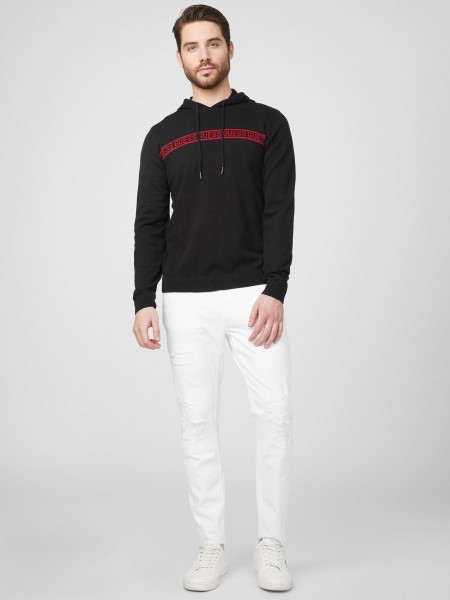 Réteg Ezen A Kapucnis Pulcsin, Amely Elöl Logószöveggel, Húzózsinórral Záródik és Bordázott Mandzsettával Rendelkezik.