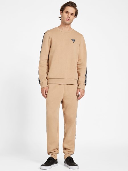 Pirított Taupe Guess Dover Logós Crewneck Pulóver