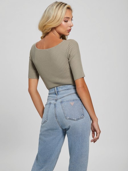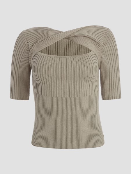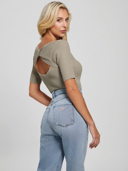 Viseld úgy, Ahogy Szeretnéd. Ezt A Bordás Kötött Pulóver Felsőt úgy Tervezték, Hogy Mindkét Oldalával Előre Nézzen. Egyik Oldalán Kivágással és Csavarással, A Másikon Pedig Sima Csónakos Nyakkivágással Rendelkezik. Felelősen Beszerzett Erdei Rostból Készült.