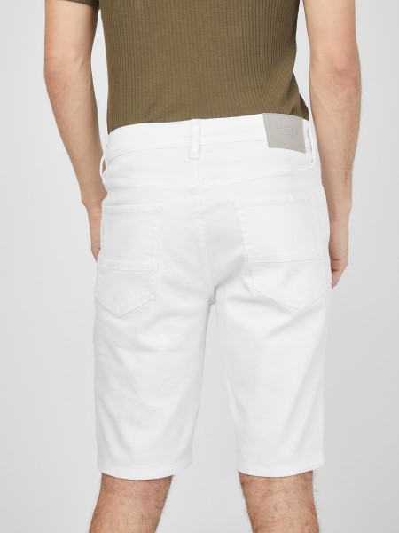 Fehér Farmer Rövidnadrág Moto öltésekkel és öt Zsebes Szerkezettel.