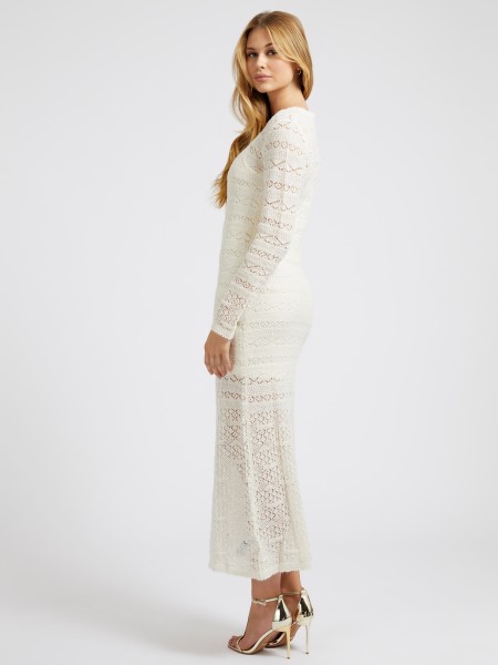 Fehér Gyapjú Keverék Hosszú Pulóver Ruha