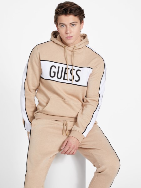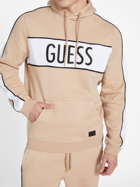 Laza Mindennapi Elengedhetetlen. Emblémás Kapucnis Kapucnis Húzózsinóros Kapucnival, Színes Blokk Dizájnnal Hímzett Logóval, Elülső Kenguru Zsebbel, Bordás Díszítéssel és Hosszú Ujjakkal.
