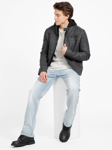 Találja Meg Szabadságát Ebben A Motokabátban. Műbőr Gyártmányú, Motovarrásokkal, állógallérral és Elülső Patentos Zárással.