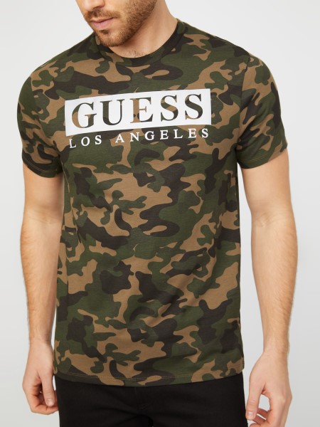 Ez A Fényvisszaverő Logós Grafikai Dizájnt Bemutató Rövid Ujjú Póló Terepmintás Bordás Nyakkivágással.