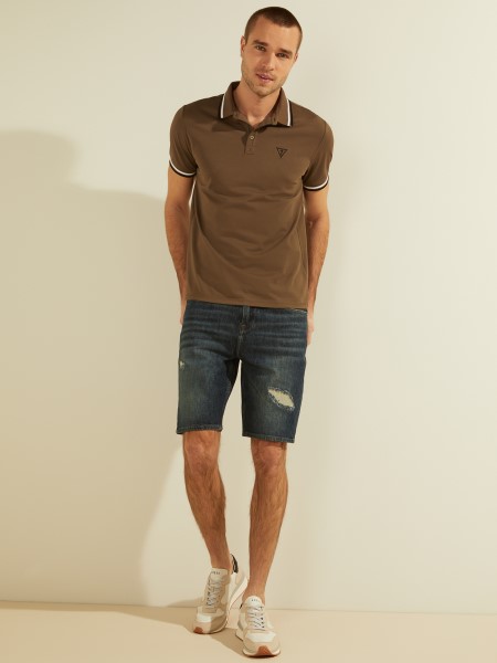 It's easy to look polished in this tailored polo featuring a button-front closure, folded collar and triangle icon detail at front corner.