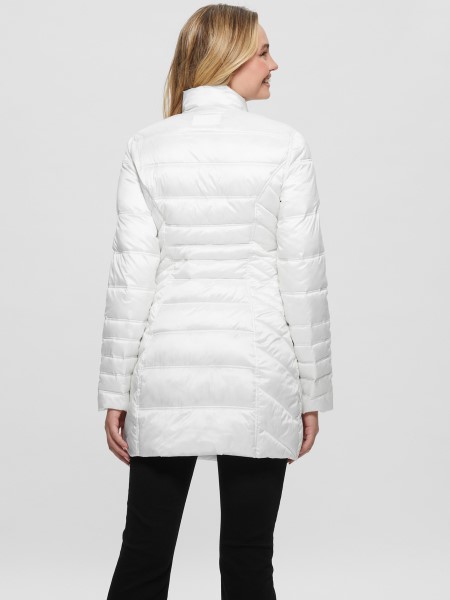 Meleget és Sokoldalúságot Keres Ezzel A Horogsoros Pufi Kabáttal. Tömör és Nyomott Oldalakkal, Steppelt Szerkezettel, álló Gallérral, Hosszú Ujjakkal, Cipzáras Zsebekkel és Kettős Cipzáras Zárással.