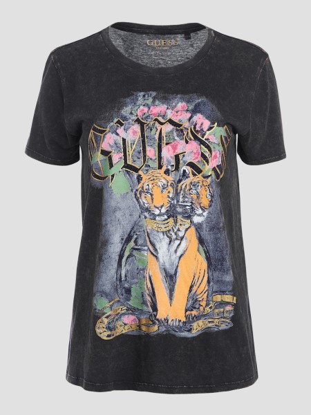 Dupla Adag Heves Energia. Vedd Fel Ezt A Savmosású Pólót, Amely Dupla Tigris Grafikával, Logóval, Bő Nyakkivágással és Rövid Ujjúval Rendelkezik, és Legyen Bátor A Napra.
