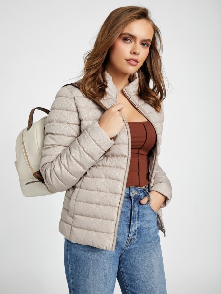 Győzze Le A Hideget Ezzel A Testre Szabott Steppelt Kabáttal, Amelyen Mindenütt Finom Logónyomat Található. álló Gallérral, Oldalsó Zsebekkel és Elülső Cipzárral Tervezték. újrahasznosított Műanyagból Készült.