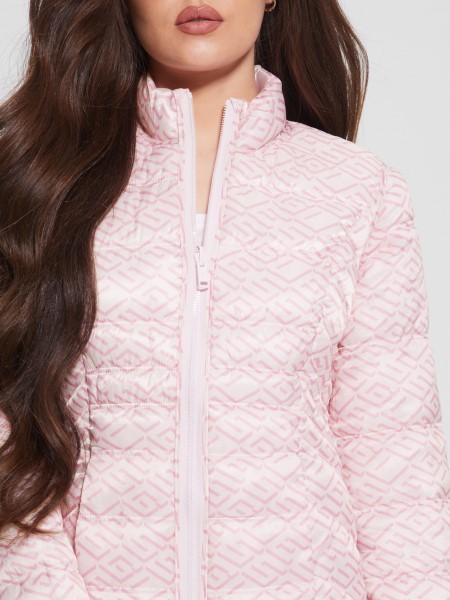 Tartsa Melegen Ebben A Kifordítható, Csomagolható Pufferkabátban, Amelynek Szilárd és Nyomtatott Oldala Van. Makett Nyakkivágással, Hosszú Ujjakkal, Cipzáras Zsebekkel, Cipzárral és Tárolótáskával Rendelkezik. Visszanyert óceáni Műanyag.