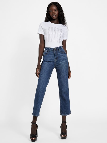 Tündököljön Mindennapi Megjelenésében Ezzel A Logós Pólóval. Elöl Strasszokkal Díszített Dizájnnal, Szűk Nyakkivágással és Rövid Ujjakkal. Szerves Pamutszálat Tartalmaz.