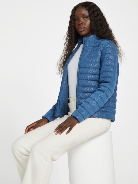 Győzze Le A Hideget Ezzel A Testre Szabott Steppelt Kabáttal, Amelyen Mindenütt Finom Logónyomat Található. álló Gallérral, Oldalsó Zsebekkel és Elülső Cipzárral Tervezték. újrahasznosított Műanyagból Készült.