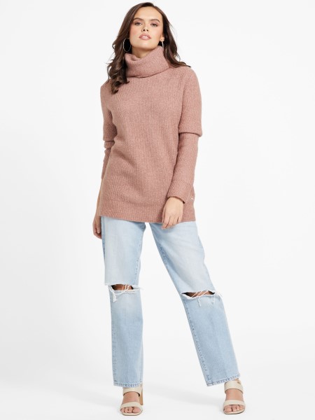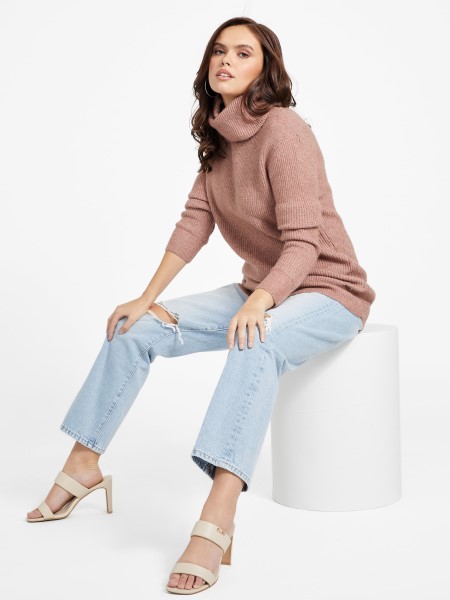 érezze Magát Kényelmesen Ebben A Garbónyakú, Hosszú Ujjú, Horogsoros Sziluettű és Laza Szabású Gyapjúkeverék Pulóverben.