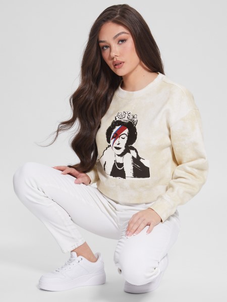 Ez Az Alapvető Pulóver Enyhén Vágott Fazonnal, Elöl Királyi Grafikával, Hátul Logós Részlettel Készült.