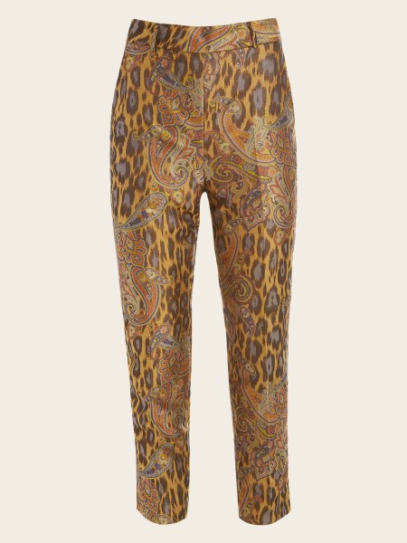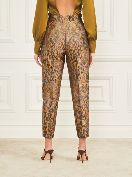 Mesteri Kiegészítés. Ez A Szövött Nadrág Jacquard Paisley és Leopárd Dizájnnal, Ferde Zsebekkel, Préselt Hercegnős Varrással, Vágott Szabással és Oldalsó Cipzárral Rendelkezik.