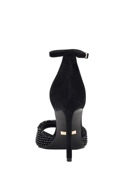 Megérdemled, Hogy A Reflektorfénybe Kerülj. Ezek A Szandálok Bársony Gyártású, Strasszokkal Kirakott Csavart Elülső Pánttal, Tűsarkúval és Csattal Záródó Bokapánttal Rendelkeznek.